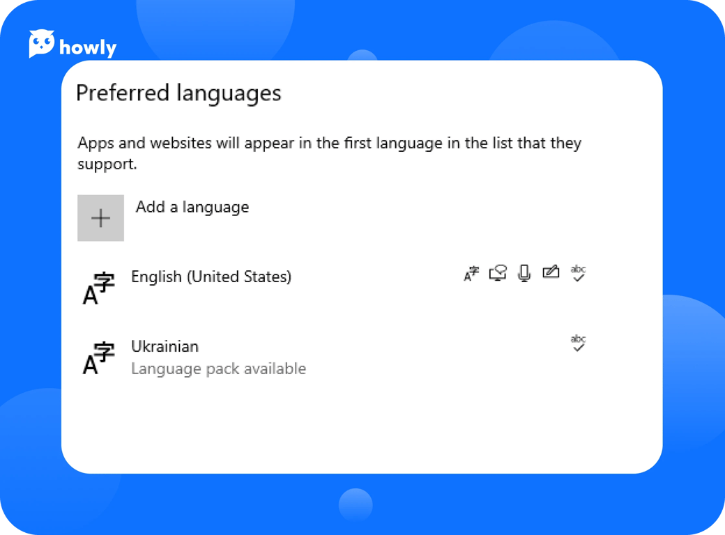 - Follow this path: In the Settings menu, click Time &Language → Language → Preferred Languages. Check if it's correct. If it’s not, can add it by clicking Add language.