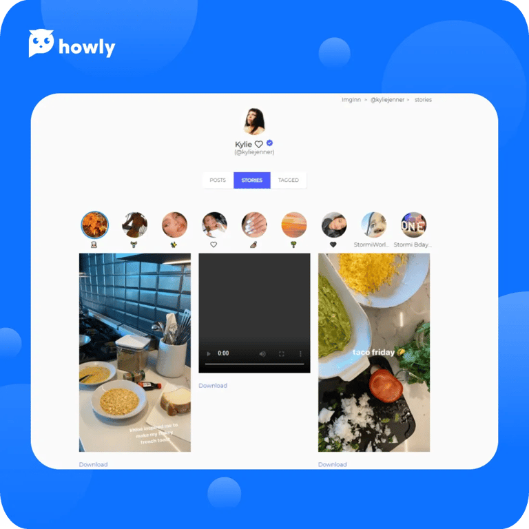 DumporYes, you can use this tool to watch current stories and highlights. The downloading interface stays the same as with posts: you find the user, open their page, and click on the Stories tab. After this, click on the big blue Download button.